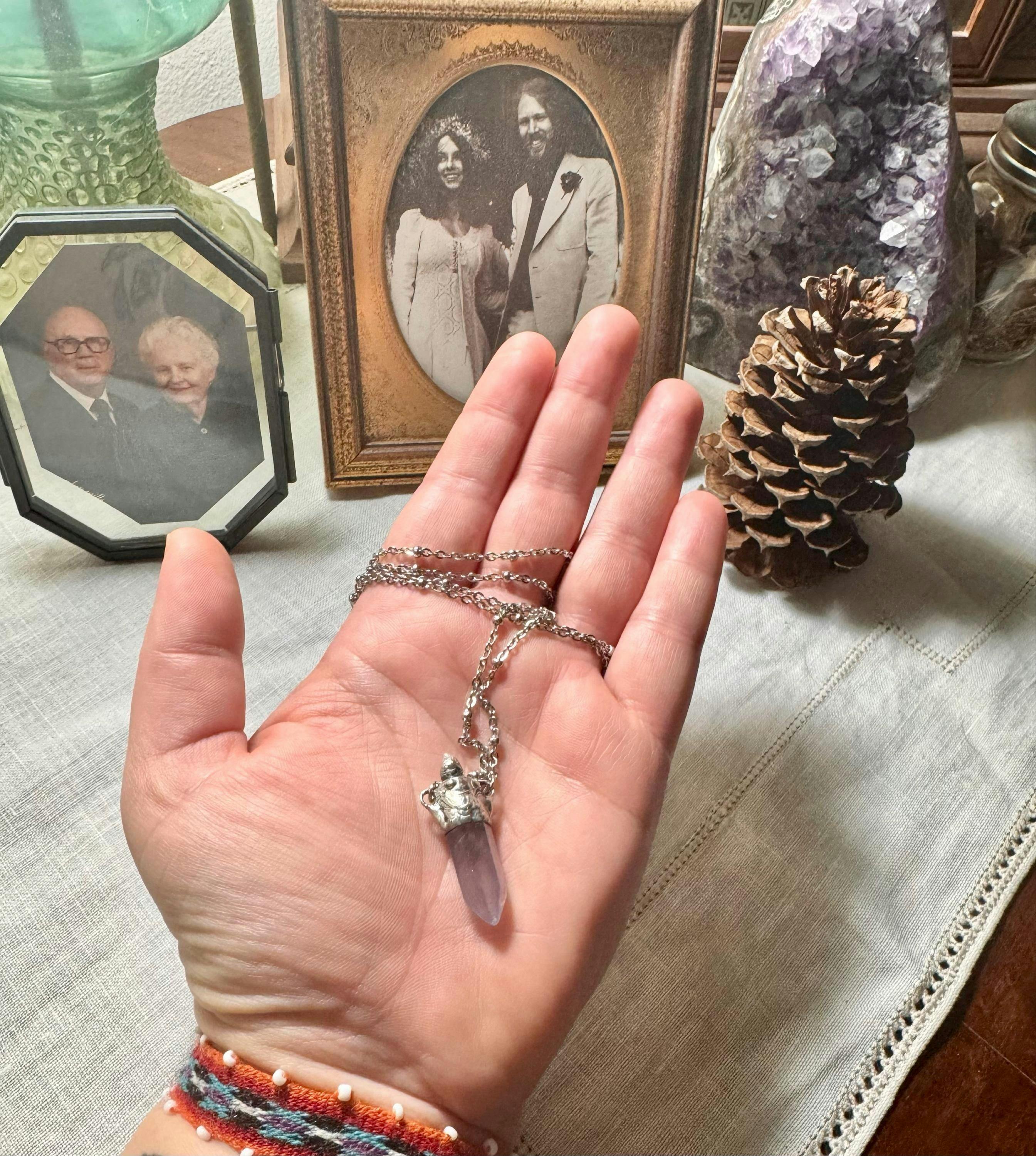 What a BEAUTIFUL necklace. Correspondence with shop owner Irene was lovely and she found a piece of amethyst that was perfect for what I was looking for. The craftsmanship is exquisite and shipping/delivery was very quick. So very pleased with my purchase. I LOVE it Irene, thank you! 🙏🏻💜🙏🏻