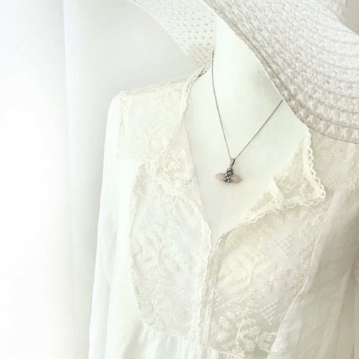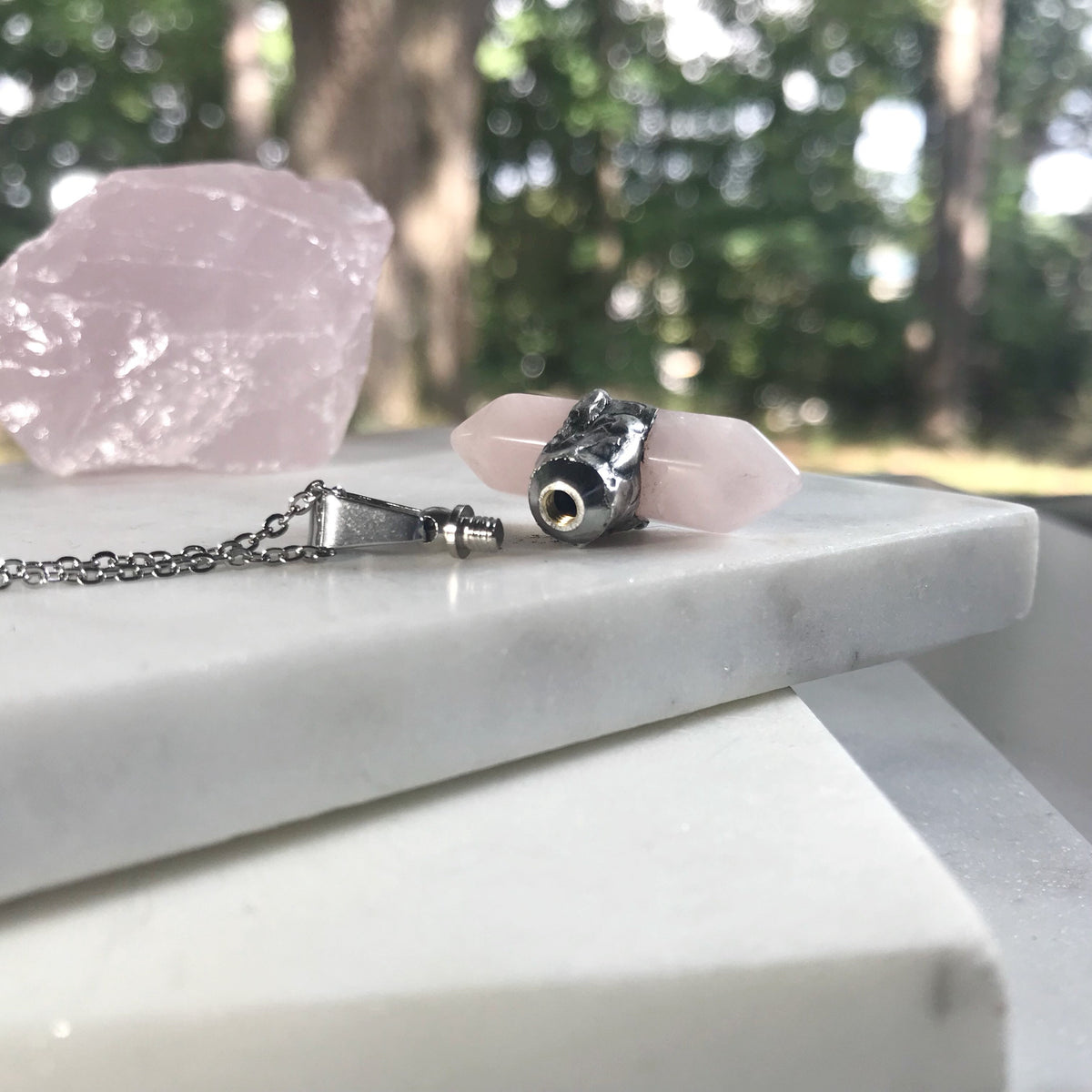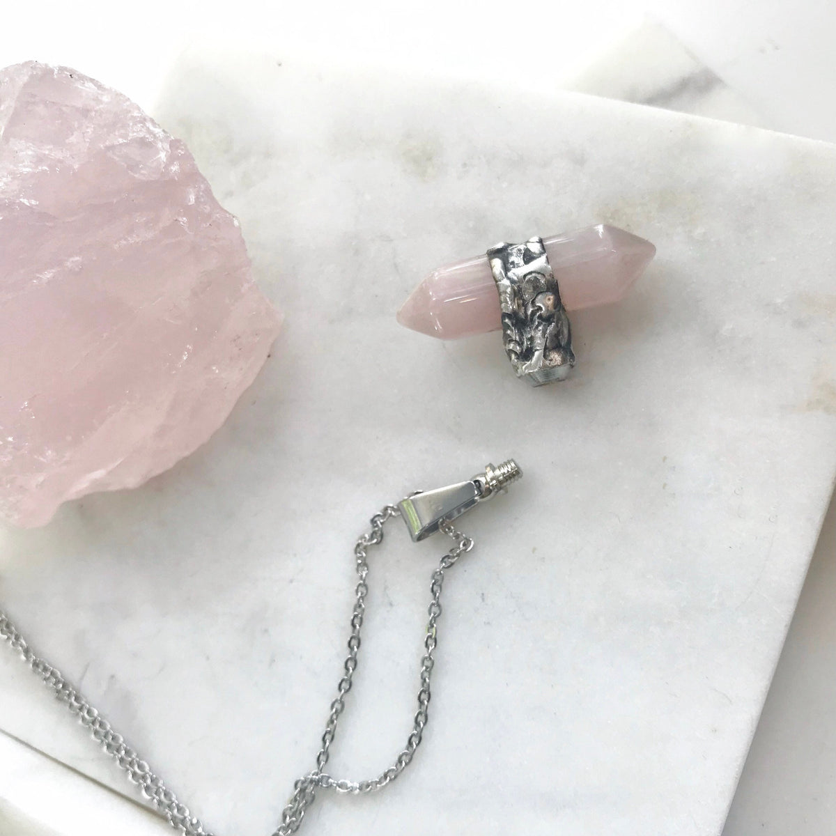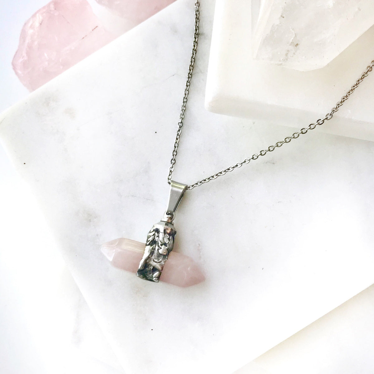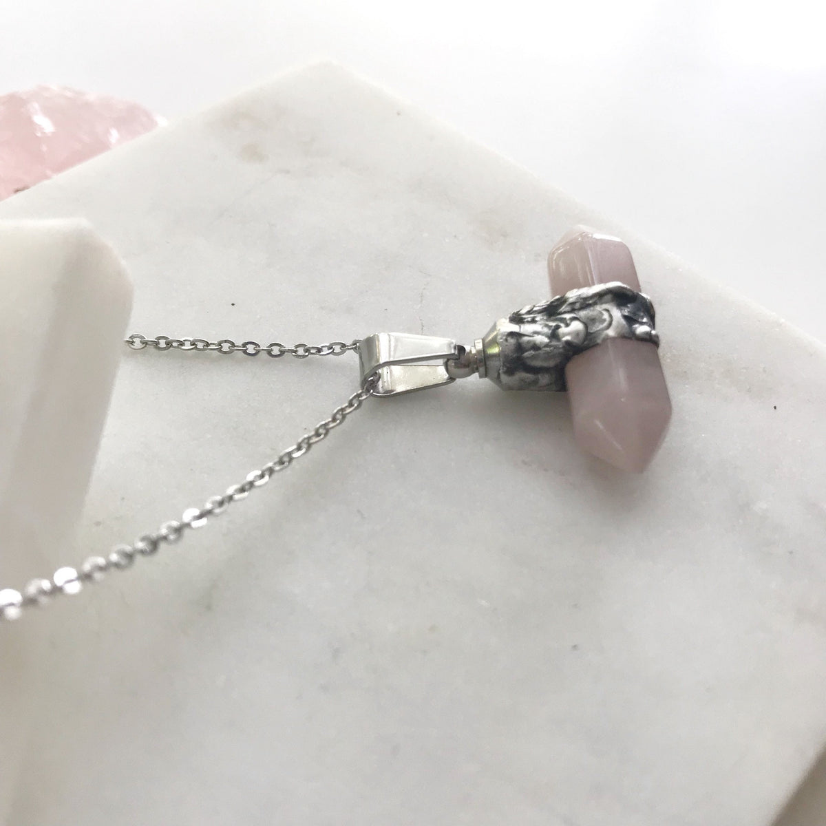 Double Point Rose Quartz Urn Necklace