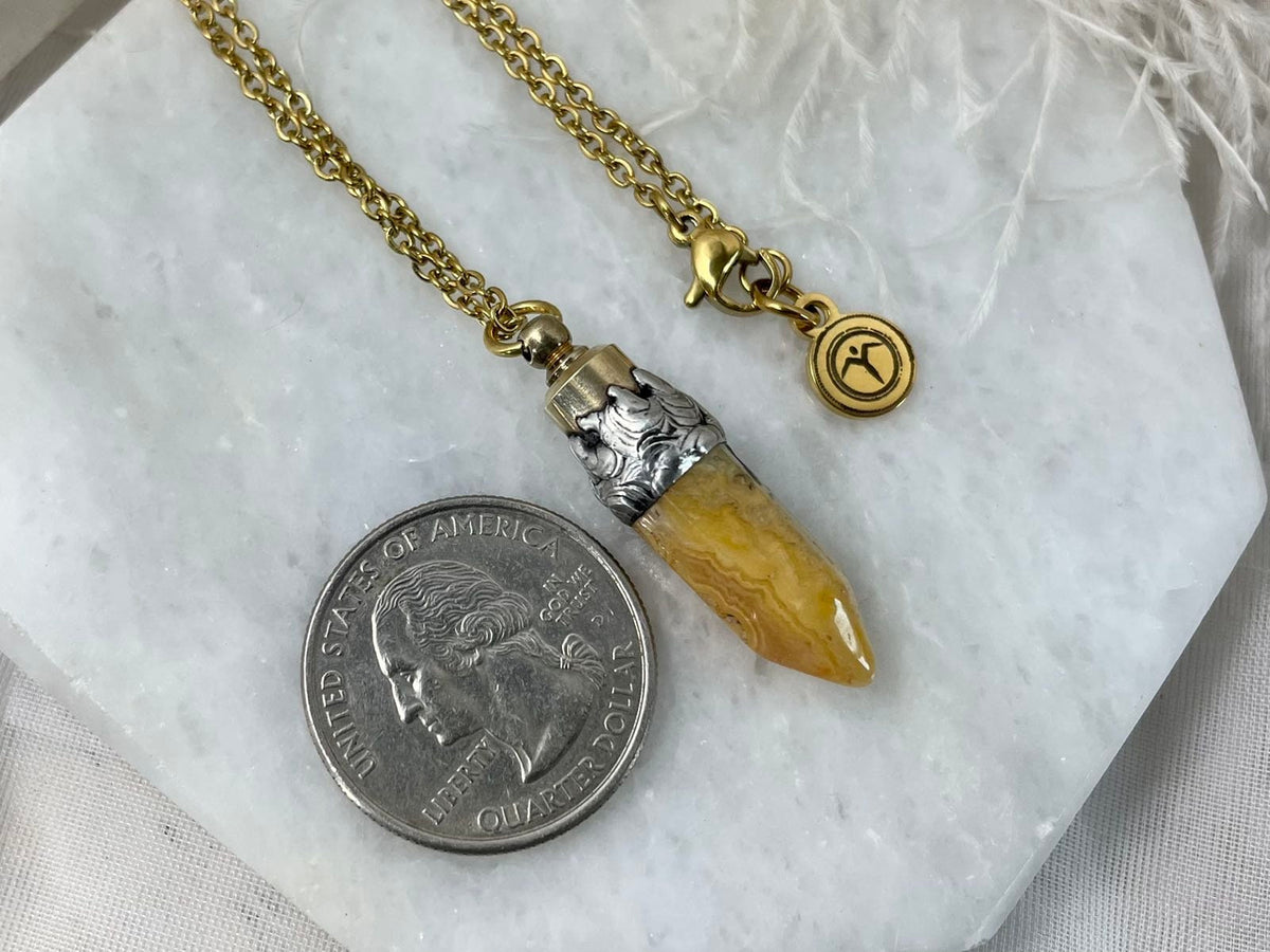 A Bumblebee Jasper urn necklace, lightweight and comfortable for everyday wear. πŸ’›πŸ–€πŸ§‘