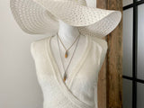 The pendant is made with a silver mixture of tin and copper, melted then dripped, creating natural drip formations. The metal is then hand painted and oxidized, giving the once bright silver finish, a rustic, aged look.