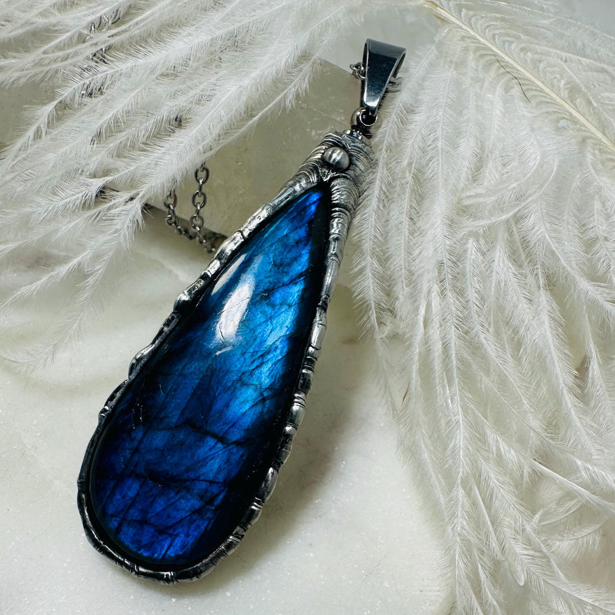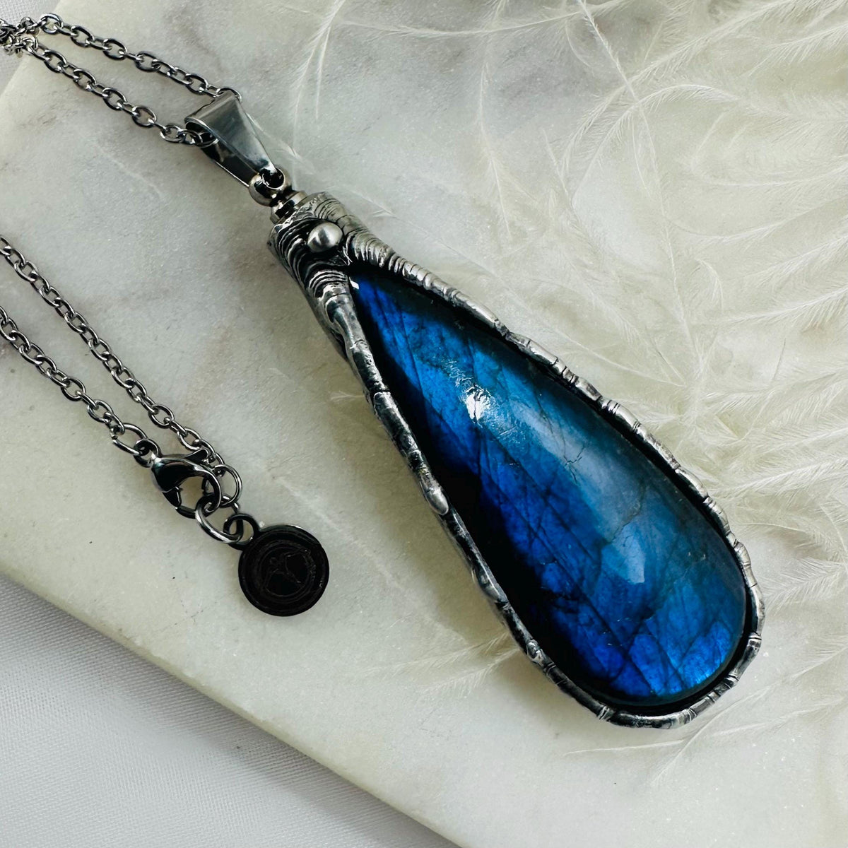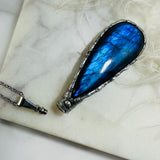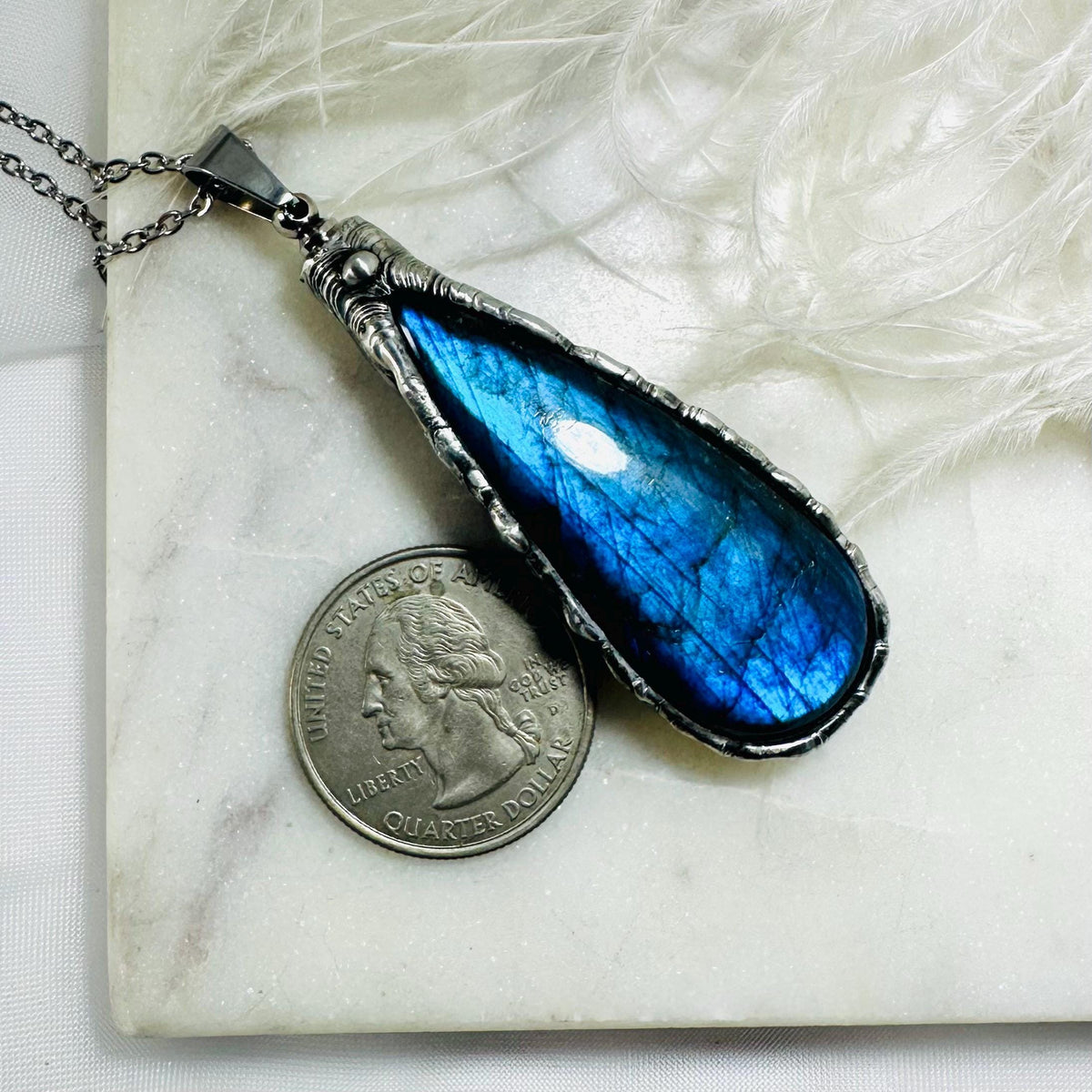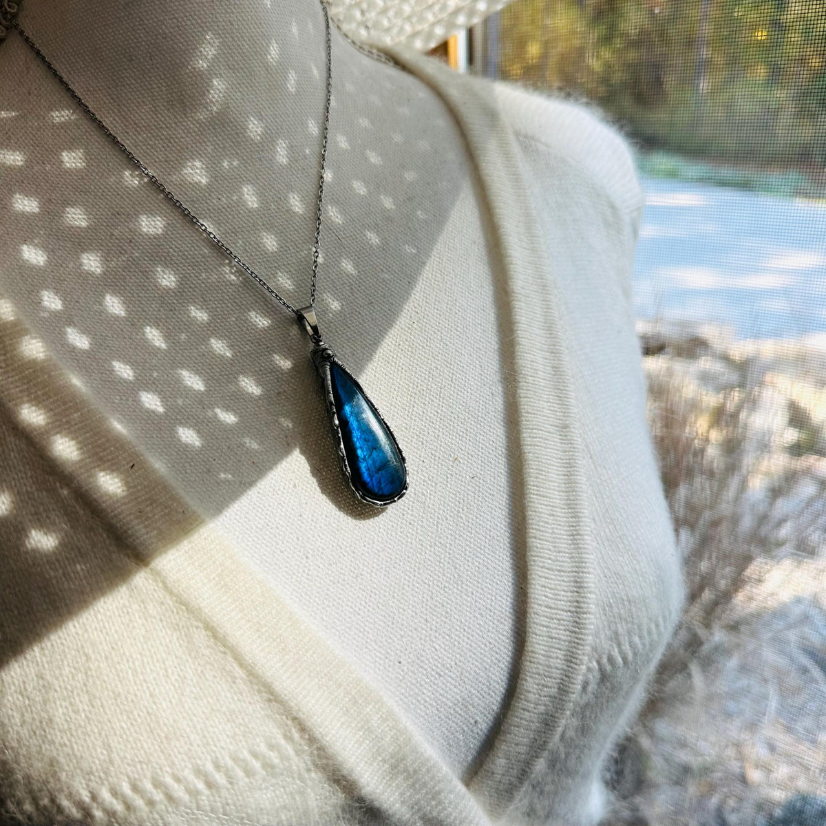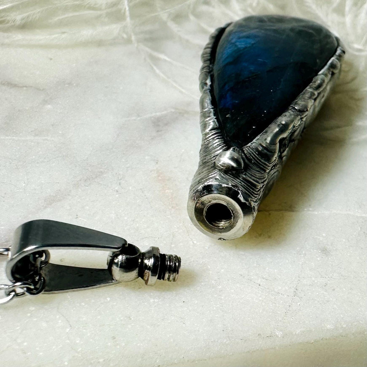Blue Labradorite Tear Urn Necklace: Memorial Jewelry, Unique Pendant for Ashes
