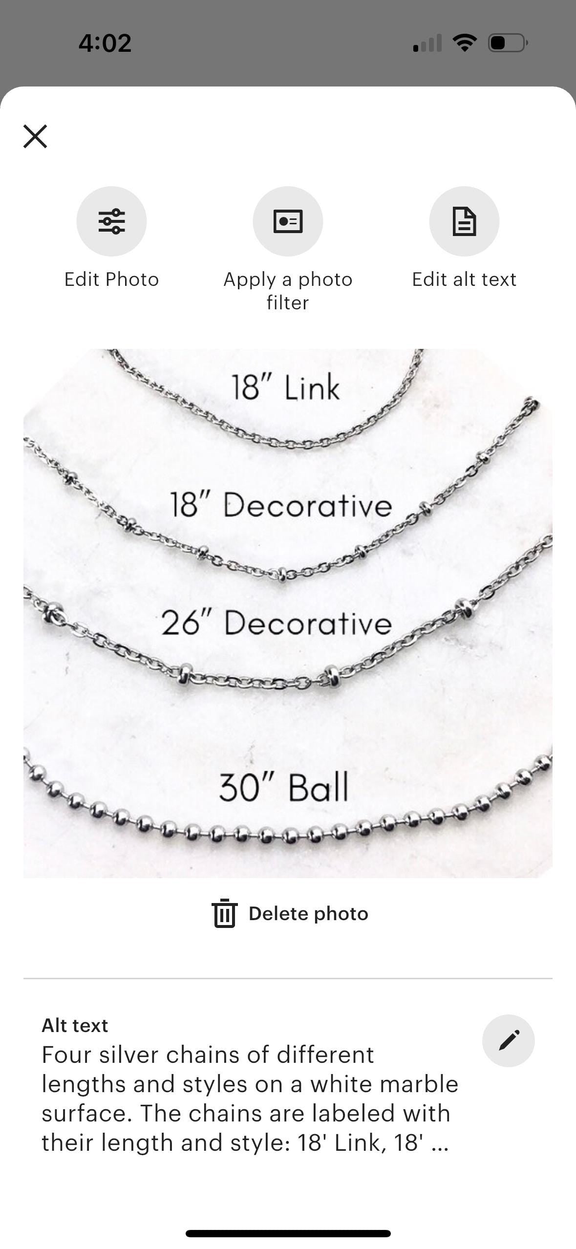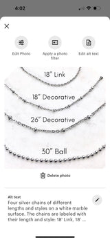 • The 30-inch stainless steel ball chain can be easily shortened at home with scissors.