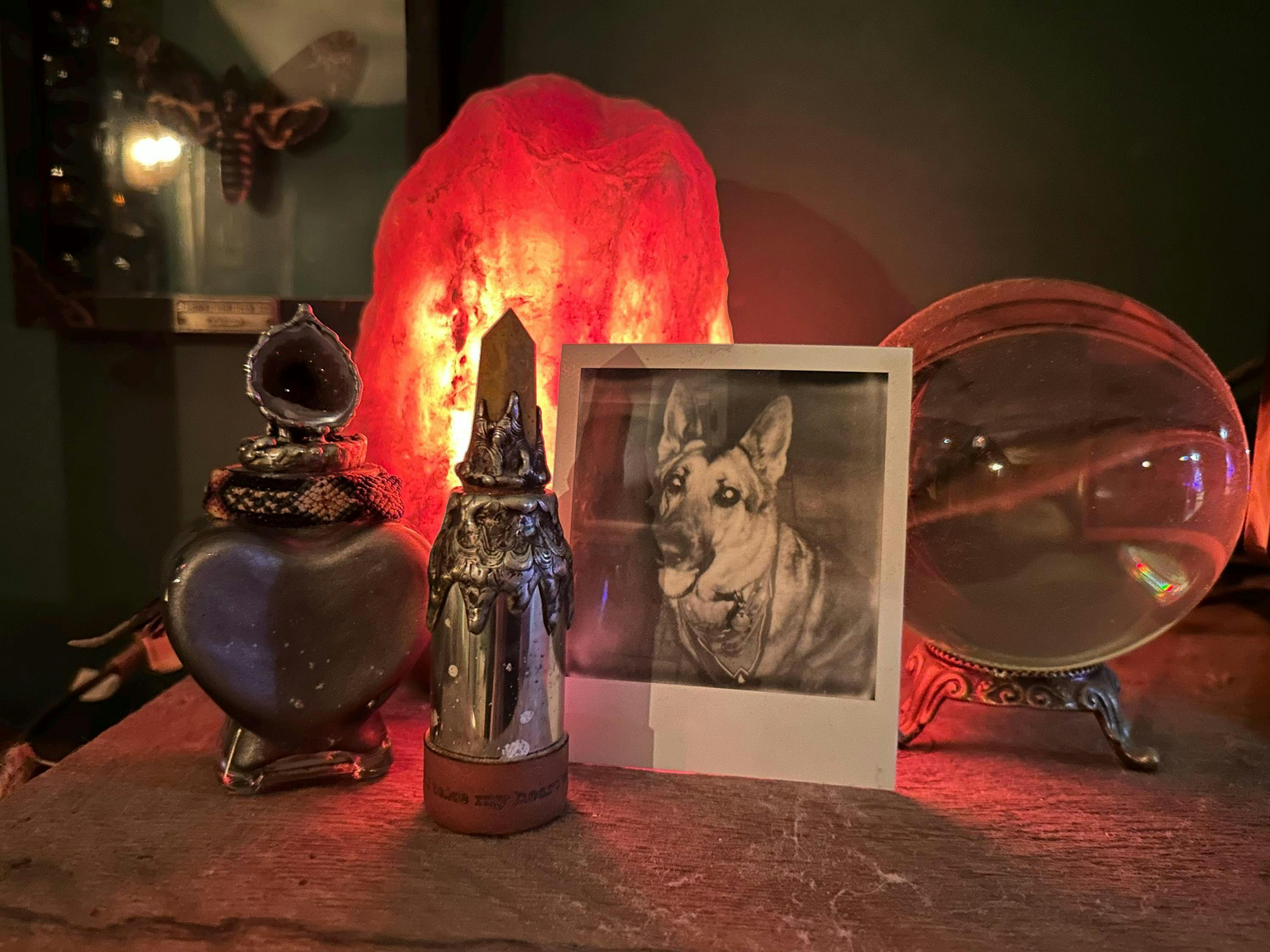 It’s a thoughtful way to keep ashes, a lock of fur, or a special keepsake close. The clear glass heart symbolizes love and openness, while the geode top adds a touch of grounding energy from nature. Handmade with care, this jar is truly one of a kind… nothing else like it exists.