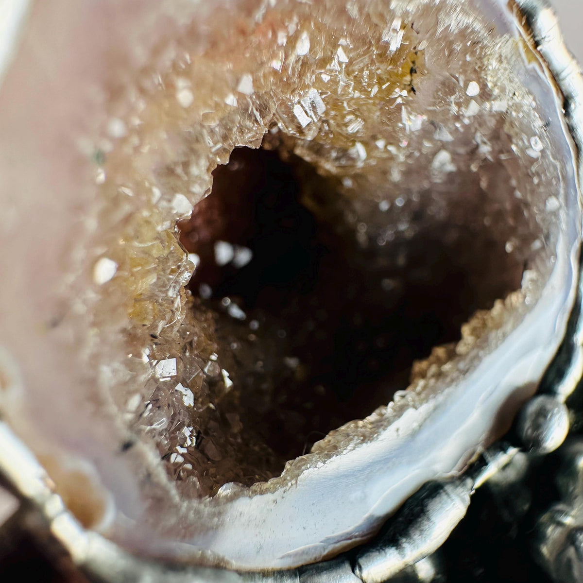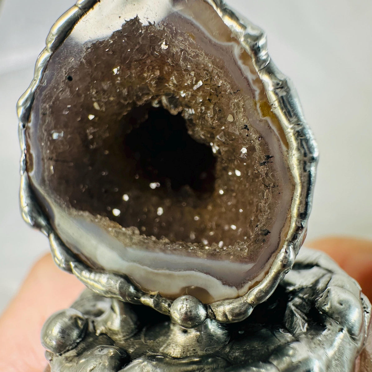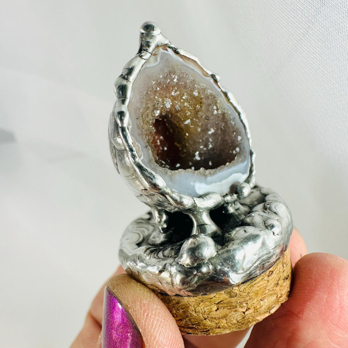 • Natural Geode soldered to cork lid