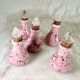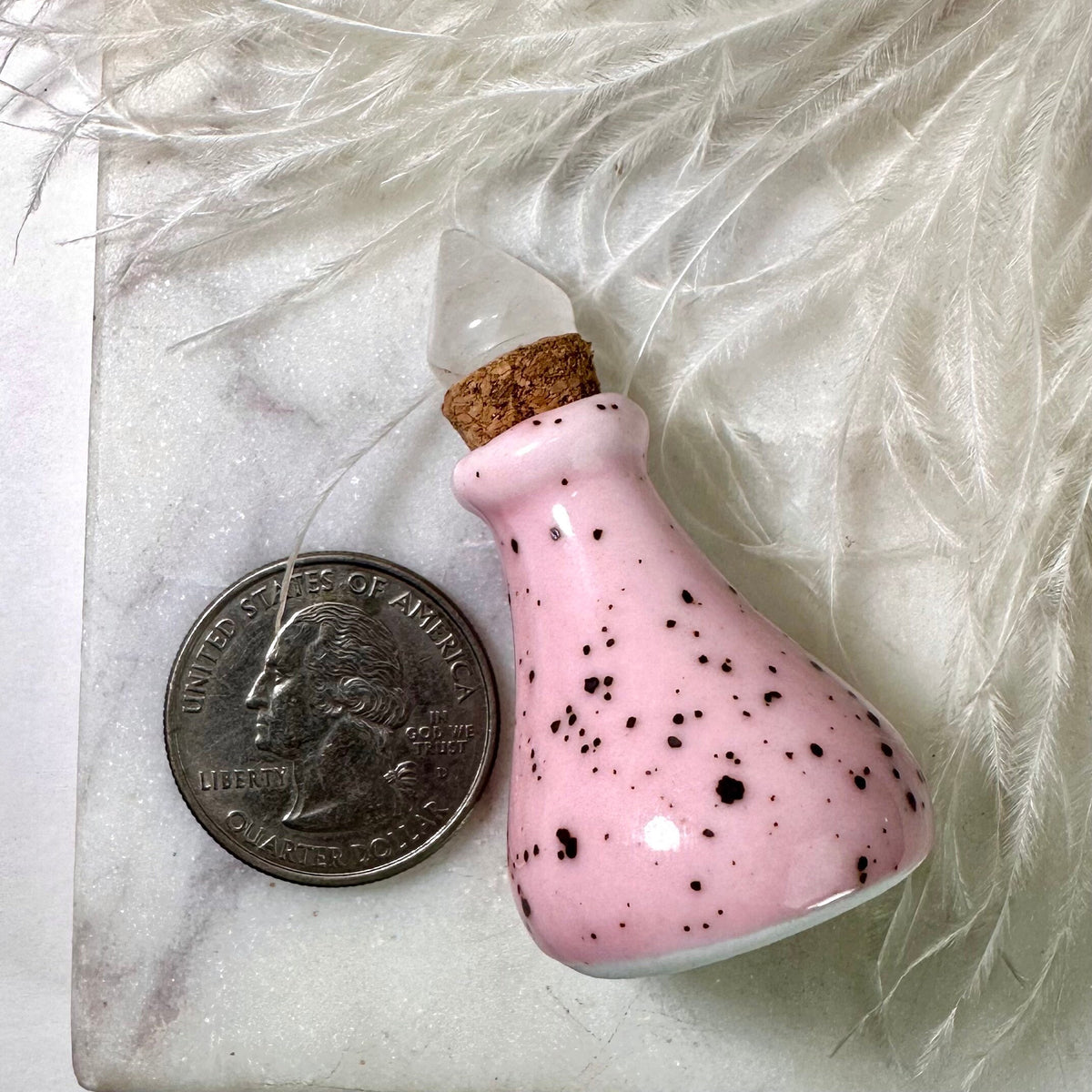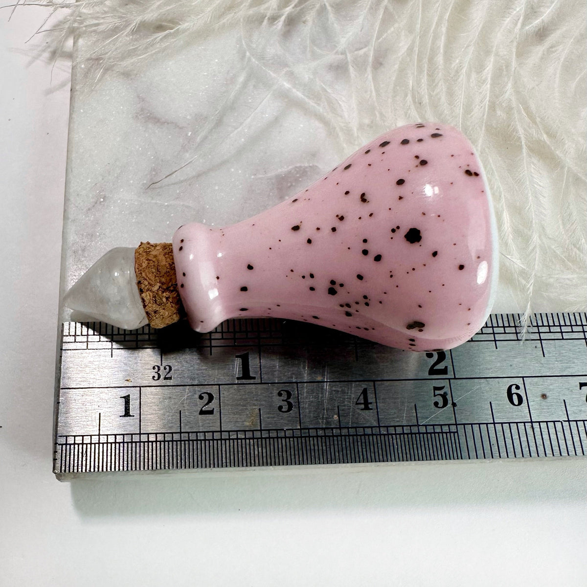 This ceramic Cremation Urn is hand glazed and markings will vary. It has a small cork lid showcasing a little quartz crystal that points towards the heavens. ๐ค Choose between a little pink urn or little blue urn. ๐