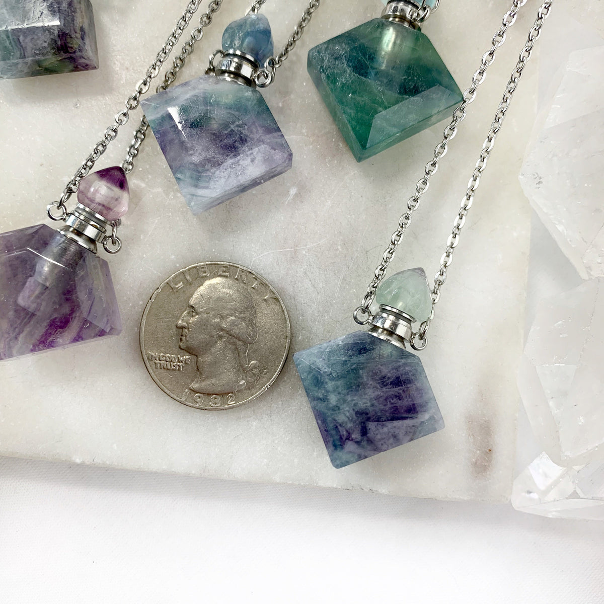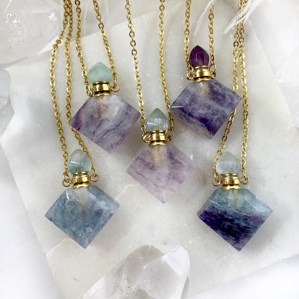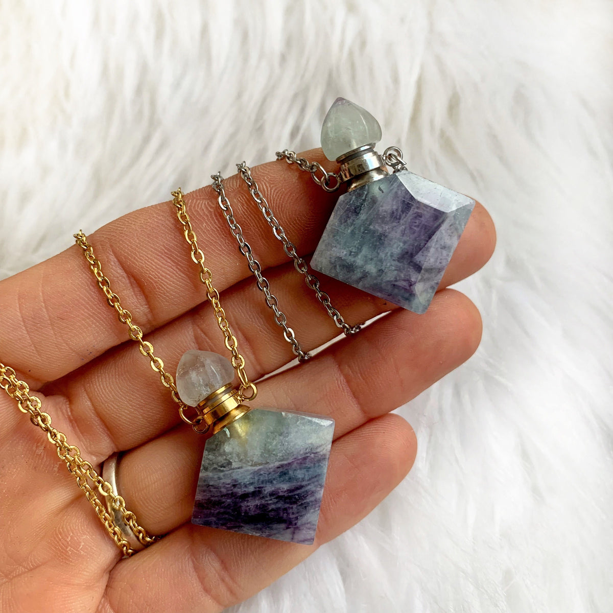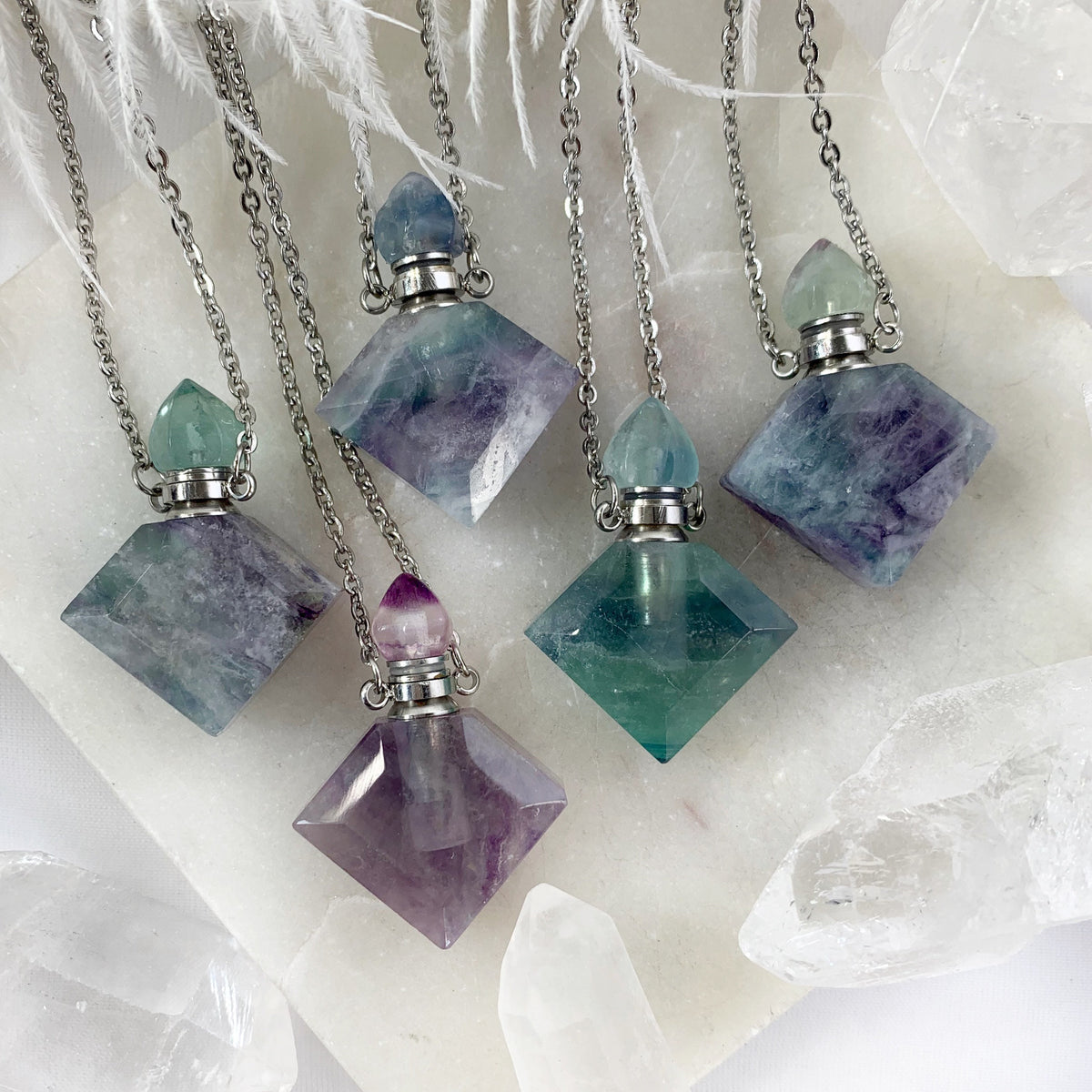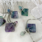These beautiful little pendants are made with unique pieces of Rainbow Fluorite. ๐ Each piece will be slightly different due to Mother Natureโs art. Your pendant will be picked at random.