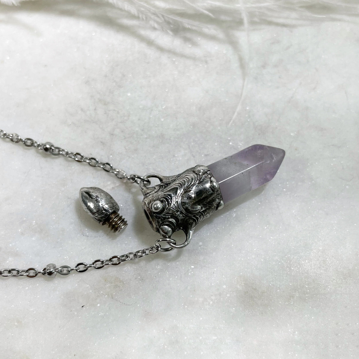 Cremation Necklace, Urn Pendant, Urn Necklace, Cremation Pendant, Mourning Jewelry, Vial Necklace, Amethyst Crystal Urn