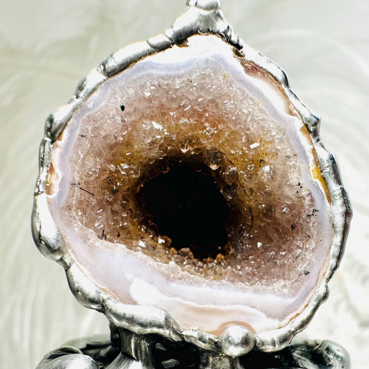 • Natural Geode soldered to cork lid