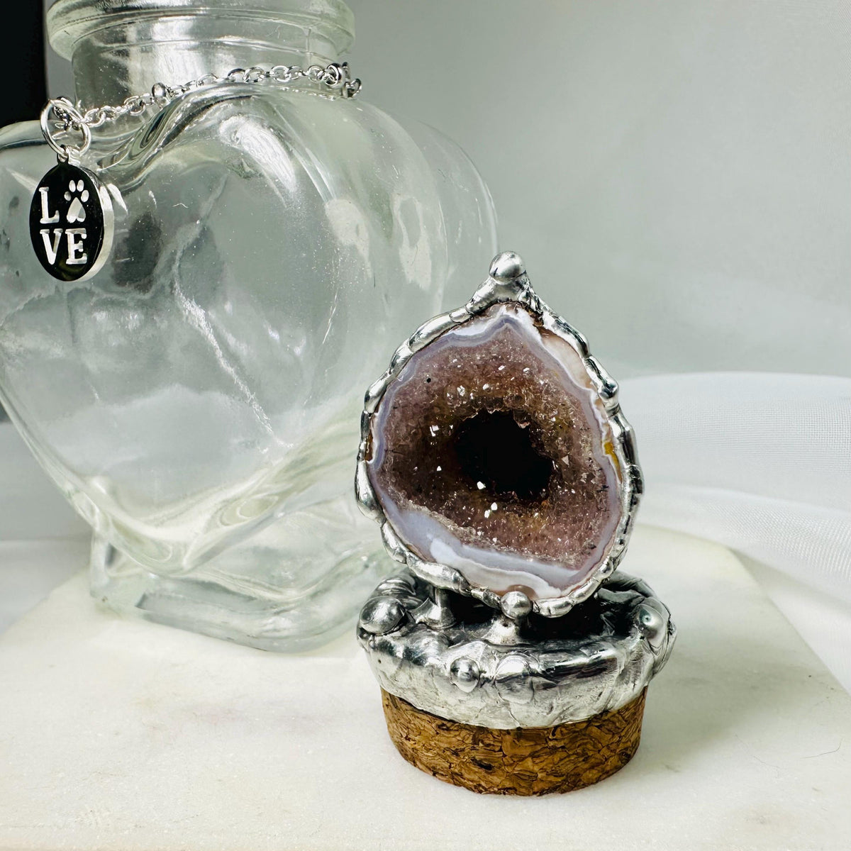 Glass Heart Keepsake with Geode Lid – Pet Memorial