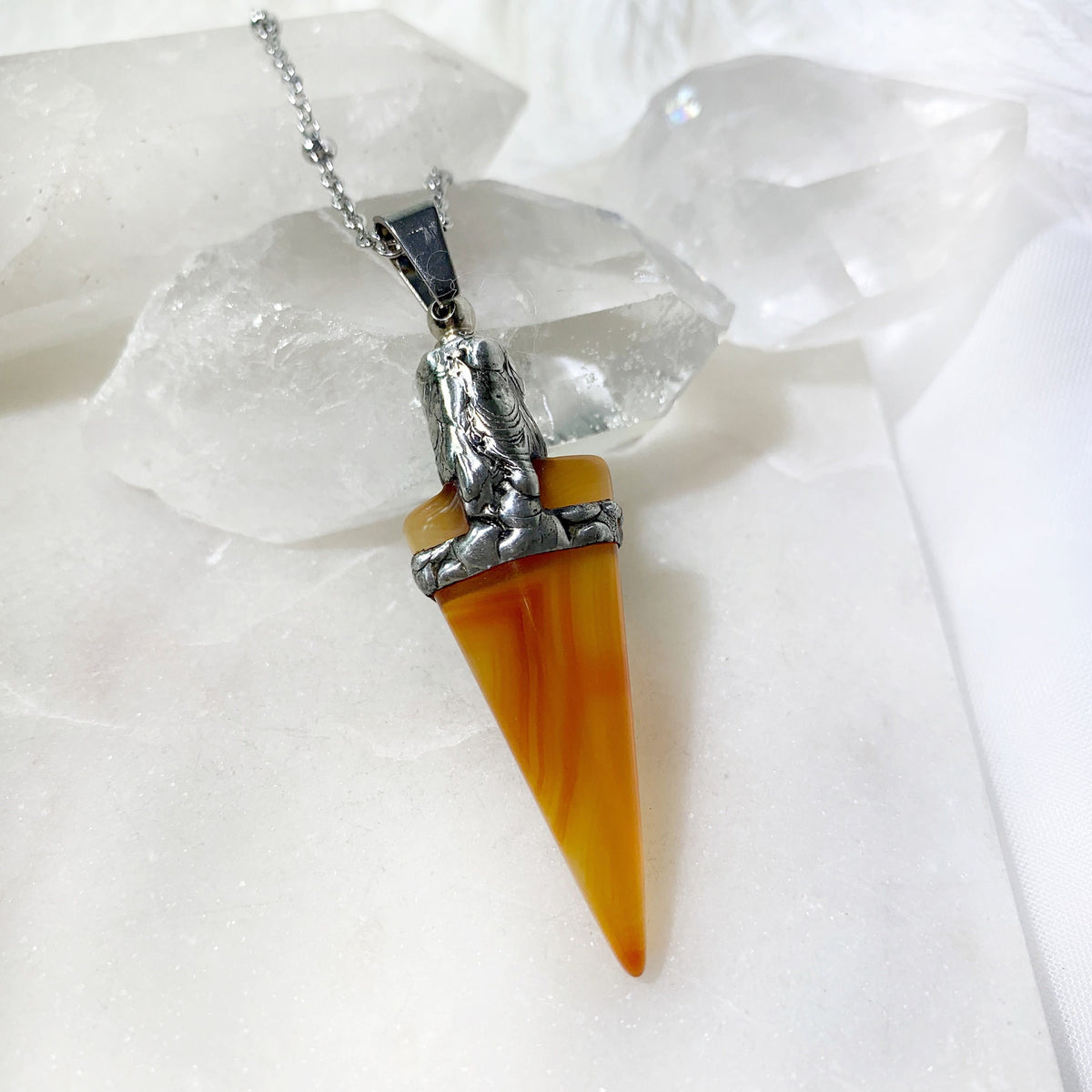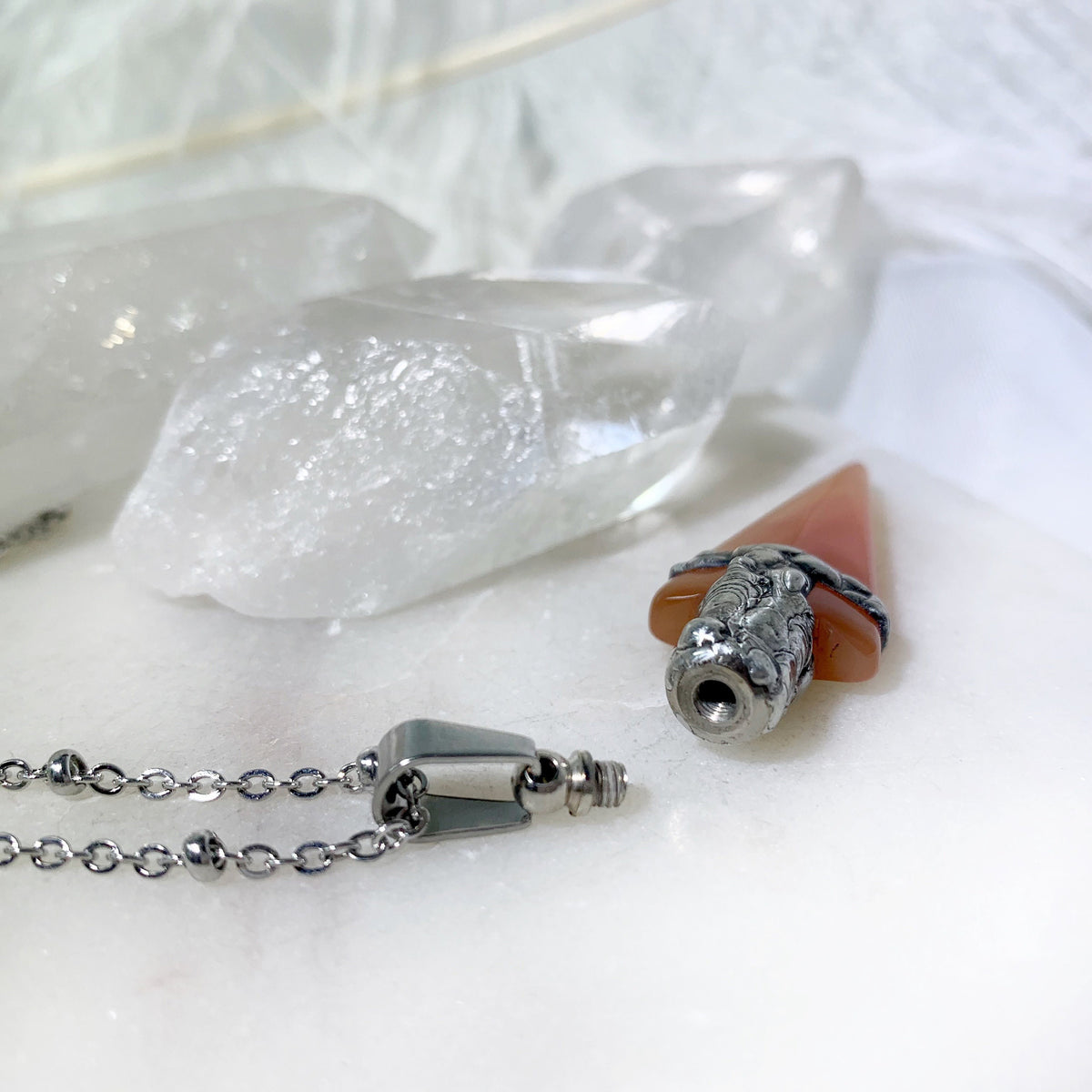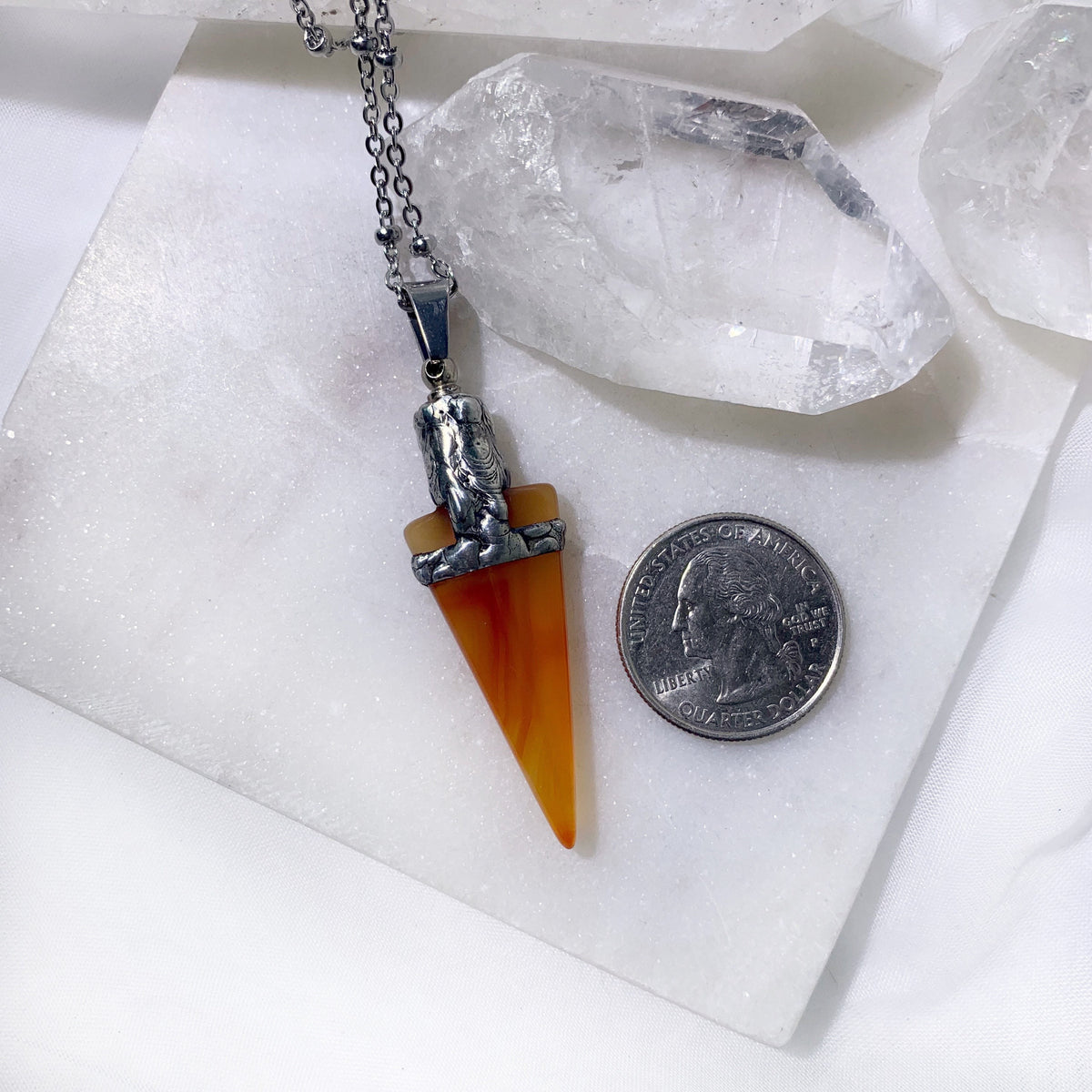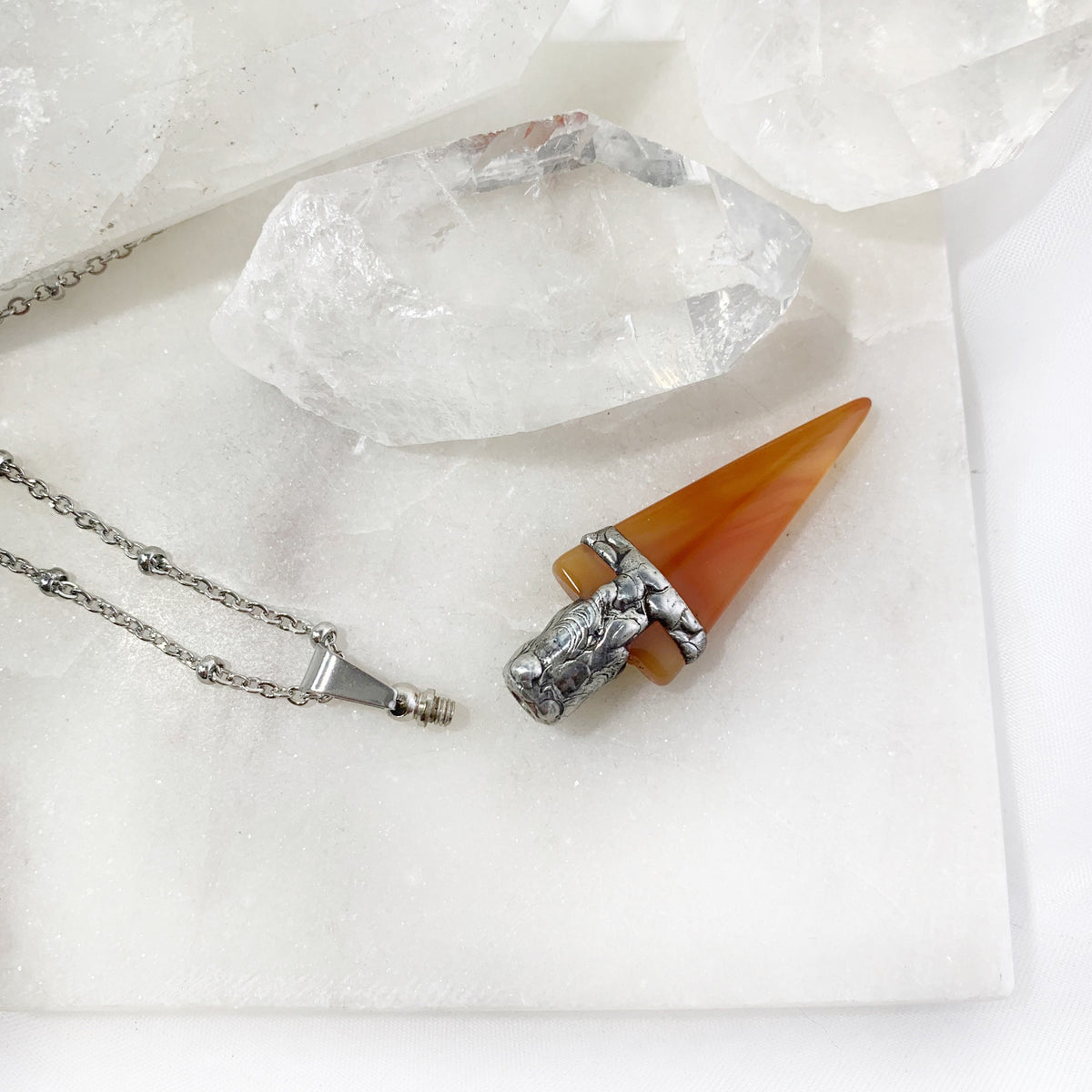 Orange Agate Arrowhead Urn Necklace