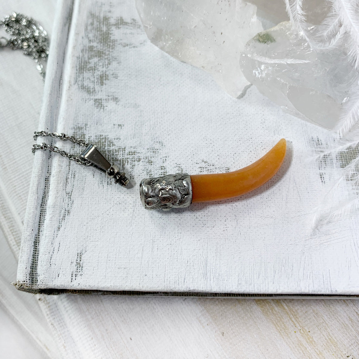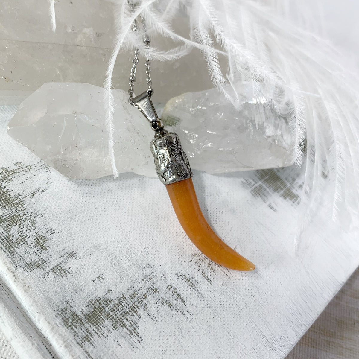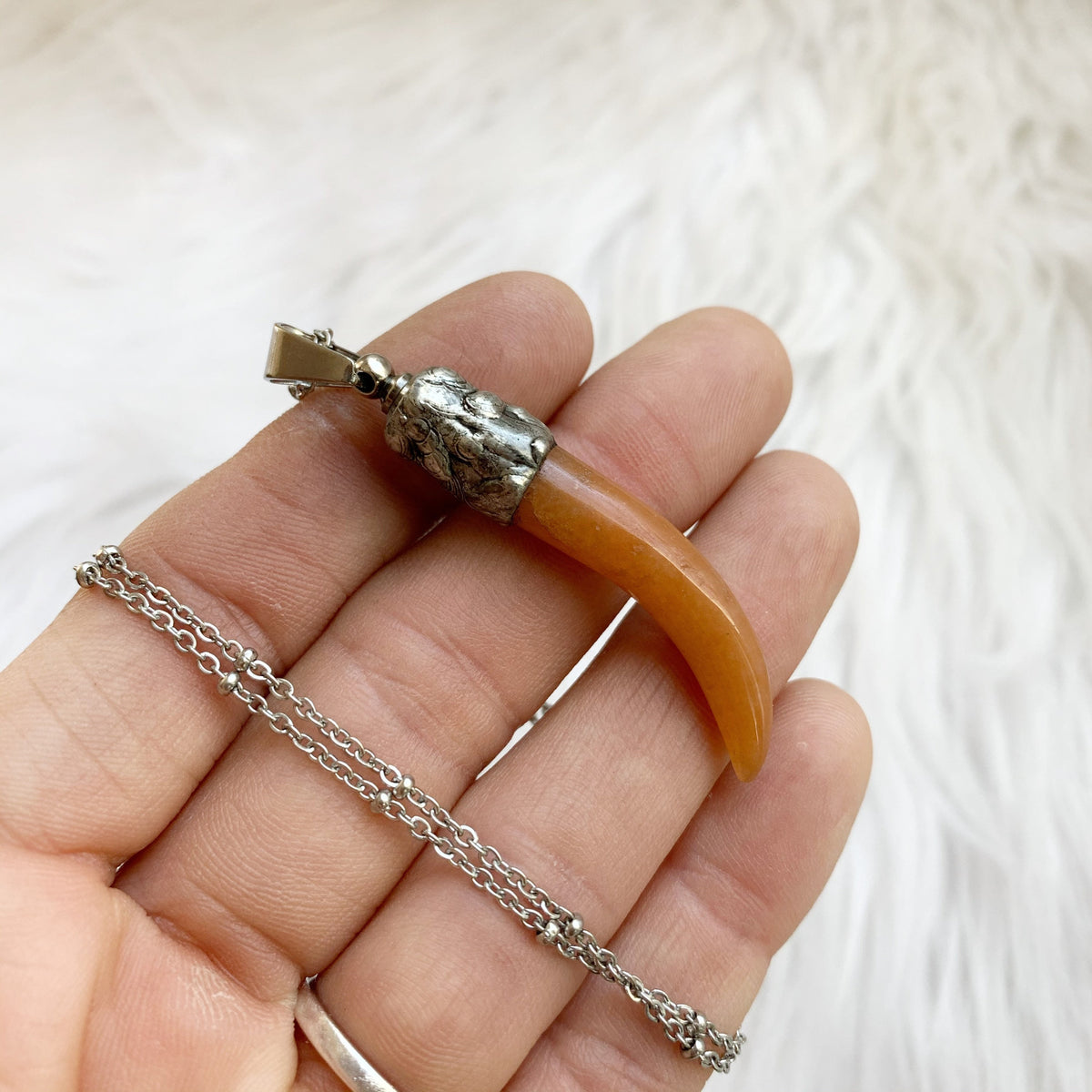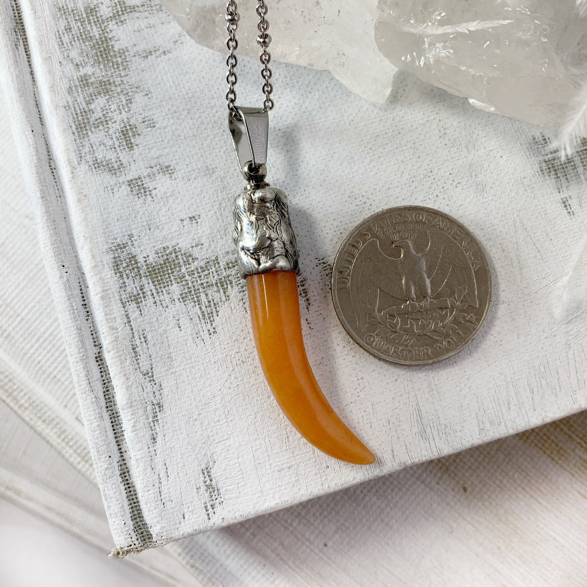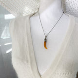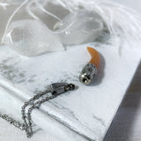 At roughly 1.5” in length, this beauty makes a unique statement and is comfortable for everyday wear. The top of this pendant unscrews and opens up to a little container above the crystal. The container is ONLY at the top of the crystal, the Orange Agate is solid. It will hold roughly a quarter teaspoon of ashes and comes with a small funnel to help with your sacred transfer.