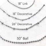 This comes with a stainless steel chain of your choice which you can choose upon checkout. The long, 30” ball chain, can easily be cut down at home with a pair of scissors.